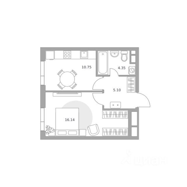 Продаётся 1-комнатная квартира 537, площадью 34,35 м², на 2 этаже в ЖК "MYPRIORITY Нижегородская" корпус 1. Стоимость — от 16588212 руб. Квартира без отделки, планировка односторонняя, окна на улицу.
