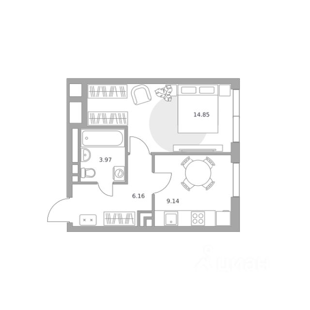 Продаётся 1-комнатная квартира 697, площадью 33,32 м², на 14 этаже в ЖК "MYPRIORITY Нижегородская" корпус 1. Стоимость — от 16375916 руб. Квартира без отделки, планировка односторонняя, окна на улицу.