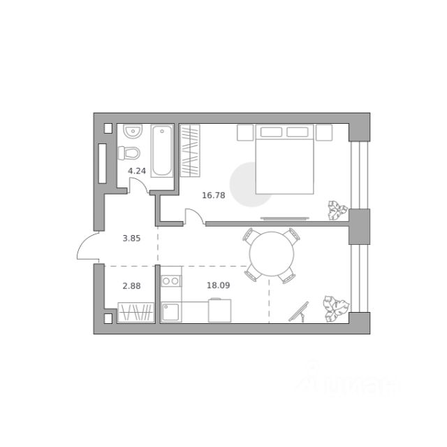 Продаётся 1-комнатная квартира 570, площадью 45,84 м², на 7 этаже в ЖК "MYPRIORITY Павелецкая" корпус 2. Стоимость — от 30445222 руб. Квартира без отделки, планировка односторонняя, окна во двор.