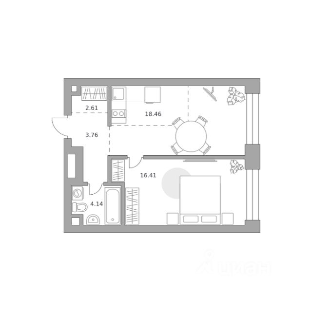 Продаётся 1-комнатная квартира 570, площадью 45,84 м², на 7 этаже в ЖК "Павелецкая от Гранель" корпус 2. Стоимость — от 30445222 руб. Квартира без отделки, планировка односторонняя, окна во двор.