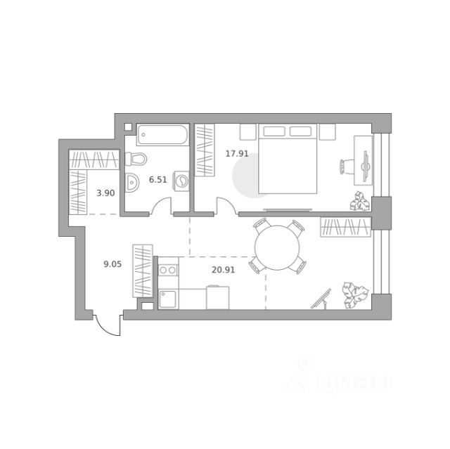 Продаётся 1-комнатная квартира 475, площадью 39,91 м², на 7 этаже в ЖК "MYPRIORITY Павелецкая" корпус 2. Стоимость — от 30153050 руб. Квартира без отделки, планировка односторонняя, окна во двор.