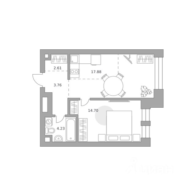 Продаётся 1-комнатная квартира 177, площадью 40,59 м², на 14 этаже в ЖК "Павелецкая от Гранель" корпус 2. Стоимость — от 30888870 руб. Квартира без отделки, планировка односторонняя, окна во двор.
