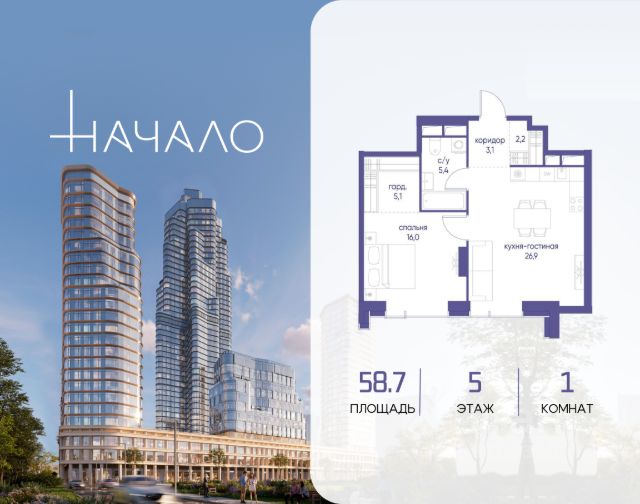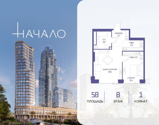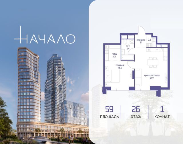 В престижном районе Пресня, на перекрестке делового и исторического центров Москвы, продается однокомнатная квартира площадью 55.00 кв. м без отделки. Квартира находится на 10 этаже 11-этажного дома, в новом элитном жилом комплексе "Начало" от девелопера "Донстрой". Реализация проекта запланирована на 1 квартал 2030 года. Начало - футуристический дом на Пресне в нескольких минутах от Сити и Садового кольца. Проект по-настоящему космического масштаба, где есть все, чтобы раскрыть себя и свои возможности. Расположение Пресня - один из самых престижных районов Москвы. Жить здесь - значит стать частью истории столицы, быть в эпицентре деловой активности города и ощущать, как сама Вселенная вращается вокруг вас. - 5 минут пешком до Красногвардейских прудов; - 15 минут пешком до ст. метро "Улица 1905 года"; - 6 минут на автомобиле до Садового кольца и небоскрёбов "Москва-Сити"; - 12 минут на автомобиле до Кремля. Архитектура как путешествие Как росток пробивает скалу, как растет кристалл, как ракета устремляется ввысь - так формируется архитектурный образ этого дома. Точно выверенный баланс между футуристичными формами и функциональным содержанием дома выводит жизнь в нем на новую орбиту. Стеклянные фасады отражают небо и город, превращая здание в зеркало для окружающего ландшафта. Двор между небом и землёй Просторная территория двора с тремя тематическими зонами отдыха: "Млечный путь" - для детских игр и развлечений; "Космический сад" - для тихого отдыха и релакса; "Метеоритный сад" - для любителей спорта. Открытый променад - сквозной маршрут на крыше стилобата с зонами отдыха, занятий спортом, детских игр и совместной работы. Все площадки плавно связаны между собой прогулочной дорожкой. Теплая кольцевая галерея и мосты над пространством двора - все корпуса "стыкуются", точно модули космической станции. Главный центр притяжения В составе проекта возводится собственный комьюнити-центр, где создана идеальная атмосфера для любых начинаний: - Детский клуб для будущих покорителей Вселенной; - Коворкинги для решения задач планетарного и космического масштабов; - Переговорные для судьбоносных и просто важных встреч; - Лаунжи с атмосферой дзена и релакса; - Библиотека для спокойного чтения; - Кинотеатр для классики и блокбастеров. Территория комфорта и приватности Всё нужное рядом: - Современный образовательный центр со школой и детским садом - для ваших детей; - Фитнес-центр с бассейном - для релакса и борьбы со стрессом; - Ресторанная улица: кафе, рестораны, летние террасы - для деловых обедов и семейных ужинов; - Пекарня и минимаркет в доме - для ежедневных покупок; - Сквер у дома - для неспешных прогулок и спокойного отдыха; - Никаких такси на улице. Машина заберет вас прямо в подземном паркинге вашего корпуса.