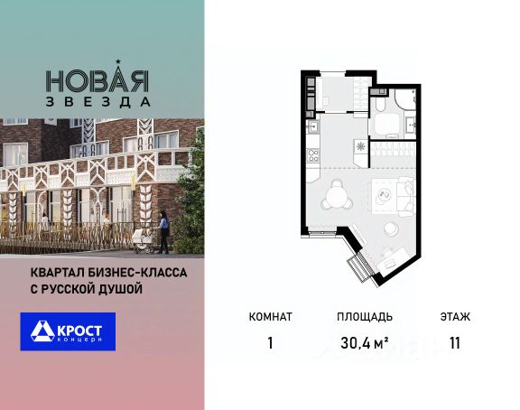 Продаётся 1-к квартира 30.4 кв.м. на 11-м этаже 22 этажного дома, корпус 2 - Резиденция "Сочи" . Без отделки. Легендарный квартал "Новая звезда" продолжается II очередью, которая спроектирована как мультифункциональный кластер. ЖК "Новая Звезда" расположен на территории Новой Москвы, в 10 мин. от м. Теплый стан и в 9 мин. пешком от строящейся станции метро "Бачуринская". Дизайн квартала спроектирован так, чтобы создать 2 города — Гостиный двор и комплекс жилых резиденций. Гостиный двор это стилобат, в котором разместятся рестораны, магазины, спортивные секции, детские кружки. Это место для активной городской жизни прямо в вашем квартале. Гостиный двор, безусловно, является уникальным форматом организации общественной жизни, предлагая жителям квартала весь необходимый спектр услуг в шаговой доступности от дома.. Жителям II очереди квартала "Новая звезда" будут доступны все инфраструктурные преимущества единого квартала: - образовательный кластер с уже построенной инновационной школой нового поколения; - спортивная инфраструктура; - торговые площади с услугами на первых этажах жилых домов.Прямая продажа от застройщика ООО СЗ "ГСД". Продам 1-комнатную квартиру 1-комнатных квартир в Новая Звезда в Москве.