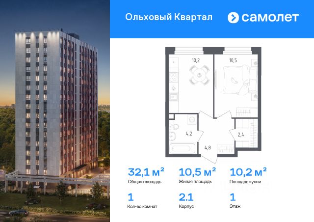 1-комнатные квартиры в жилом комплексе Ольховый КварталЖК «Ольховый Квартал»