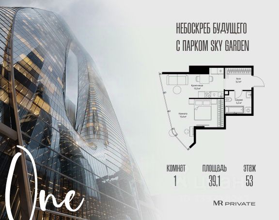 Старт продаж! Квартиры в Москва-Сити в самой инновационной башне One. В продаже 1-комнатная квартира площадью 39.00 м² на 37-м этаже. Новый современный жилой комплекс премиум-класса One расположен в самом сердце деловой жизни столицы — в Москва-Сити, где захватывающая дух архитектура встречается с безупречным уровнем комфорта. One находится в Пресненском районе, в пешей доступности от станции метро "Деловой центр". Проект был разработан выдающимся архитектором Сергеем Кузнецовым при участии международного бюро Gensler. Уникальная скульптурная форма башни, вдохновленная лентой Мебиуса, создает новый узнаваемый силуэт делового центра и задает непревзойденный стандарт вертикальной жизни. По замыслу архитекторов, жилой комплекс представляет собой две вертикальные башни, соединенные в нижней и верхней точках. На 85 этаже расположен Sky Garden — самый высокий в Европе парк с оазисом природы и секретным садом в облаках, а на 83 этаже парит стеклянный мост Sky Bridge с панорамными видами. Важнейшей особенностью комплекса является его всесторонняя инфраструктура по принципу All-in-One: закрытый клуб с лаунжами, приватным кинотеатром, бильярдной, рабочими зонами и фитнесом. Здесь же расположена торговая галерея бутиков и премиальный гастро-кластер, концепцию которого разработал известный ресторатор Александр Сысоев. Особенности комплекса: - Эксклюзивная архитектура от главного архитектора Москвы - Самый высокий в Европе небесный сад Sky Garden на 85 этаже - Панорамное остекление от пола до потолка во всех квартирах - Smart-инженерия и сервис уровня пятизвездочного отеля - Приватная клубная инфраструктура All-in-One - Трехуровневый паркинг с зарядными станциями для электрокаров - Круглосуточная безопасность и консьерж-сервис Расположение комплекса: - Пешая доступность от станции метро "Деловой центр" - 2 минуты до Экспоцентра - 5 минут до Дома Правительства - 7 минут до Кутузовского проспекта