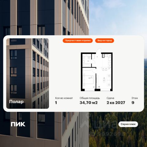 Продаётся 1-комн. квартира площадью 34,7 кв.м на 2 этаже 50 этажного дома (Корпус 1.5, Секция 2) проекта ПИК Полар. Светлый просторный подъезд на уровне земли, функциональная планировка, большие окна, предчистовая отделка. "Полар" расположен в двух минутах пешком от Медведковского заказника и вблизи метро "Медведково". Жилой квартал "Полар" строится на севере Москвы в районе Северное Медведково, в 17 минутах пешком от станции метро "Медведково". Все дома в "Поларе" - с индивидуальным дизайном. Над проектом работали сразу два архитектурных бюро - голландцы de Architekten Cie и российская студия Kamen Architects. Благодаря сочетанию двух разных направления в архитектуре, весь квартал будет выглядеть очень оригинально. У голландцев получились дома с чёткими линиями, динамичной архитектурой и панорамными балконами. А в башне Kamen отражается стремительность большого города и созерцательное спокойствие лесопарка. В квартал входит 6 жилых домов разной высоты, собственный детский сад, подземный двухэтажный паркинг, места для спорта, прогулок и отдыха. В просторных лобби - два выхода на уровне земли без порогов и пандусов. На входе установлены IP-домофоны, которыми можно управлять со смартфона. А на первых этажах откроются магазины, кафе и разные полезные сервисы. С верхних этажей "Полара" откроется впечатляющий вид на Медведковский заказник и Москву. В наших дворах мы установим удобные лавочки со встроенными портами USB и Type-C для зарядки мобильных устройств. Не нужно будет возвращаться домой, чтобы зарядить смартфон или ноутбук: можно весь день работать на свежем воздухе или сколько угодно снимать на видео играющего на площадке ребёнка. В шаговой доступности город построит общеобразовательную школу на 350 мест. Район Северное Медведково, где расположен "Полар", входит в городскую программу "Индустриальные кварталы". По ней бывшие промышленные зоны переделывают в комфортные для жизни пространства. Рядом с "Поларом" уже есть спортивный комплекс, новая школа, МФЦ и поликлиники. Артикул 874938 (Застройщик АО "Специализированный застройщик "ТМП 20")
