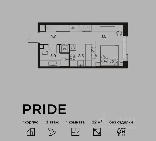 В премиальном жилом квартале PRIDE продается 1 - комнатная квартира - студия в 1 корпусе, на 17 этаже, в секции 6. Её общая площадь составляет 32.1 м². Пространство включает зону для отдыха 13,1 м², уютную кухню 8,5 м², и ванную комнату 5 м². Ключи в 2026 году. Удобная локация: Жилой квартал расположен в 15 минутах от Цветного бульвара в историческом районе Марьина Роща. До любой точки города быстро и удобно добраться, как на общественном транспорте, так и на авто — комплекс находится всего в 3 минутах от ТТК и в пешей доступности от метро. Яркая архитектура с переменной высотностью от 7 до 22 этажей от именитого бюро APEX формирует запоминающийся облик проекта. Развитая инфраструктура: Территория квартала делится на несколько отдельных частей: открытый просторный бульвар 3500 м² для прогулок и два внутренних камерных двора. Внутри предусмотрены площадки для спорта, места для игр и тихие пространства для отдыха и неторопливого общения. Коммерческие и торговые помещения спроектированы на уровне первых этажей: супермаркеты, магазины, рестораны и кофейни, барбершоп, спа-салон и другие сервисные точки. Образовательный центр со школой на 257 учеников и детским садом на 112 мест на собственной территории квартал - идеальное решение для семей с детьми. Таким образом, внутренняя инфраструктура PRIDE обеспечит все базовые потребности будущих жителей. Благоустроенная территория: Ландшафтный дизайн с многоуровневым и замысловатым озеленением будет радовать жителей на протяжении всех сезонов — богатая флора дворов включает в себя несколько десятков видов растений. Лобби как в лучших отелях мира: На первых этажах резидентов и гостей встретят лобби с авторским дизайном от Sundukovy Sisters, бюро знаменито своими работами для отелей и ресторанов премиум-класса во всем мире. Надежный застройщик: Девелопер PIONEER — компания с 24-летней историей. В портфеле — 40 проектов жилой, коммерческой, социальной и многофункциональной недвижимости в Москве и Санкт-Петербурге. С 2001 года было реализовано 2,9 млн м². В настоящее время 1,6 млн м² находятся в стадии проектирования и строительства. Среди новых знаковых проектов девелопера — премиальные жилые кварталы и деловые объекты класса А.