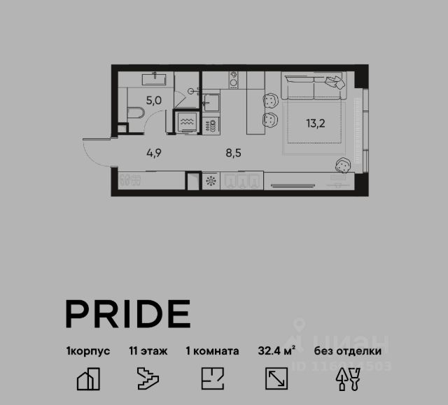В премиальном жилом квартале Прайд продается 1 - комнатная квартира - студия в 1 корпусе, на 3 этаже, в секции 6. Её общая площадь составляет 32 м². Пространство включает зону для отдыха 13,1 м², уютную кухню 8,5 м², и ванную комнату 5 м². Ключи в 2026 году. Удобная локация: Жилой квартал расположен в 15 минутах от Цветного бульвара в историческом районе Марьина Роща. До любой точки города быстро и удобно добраться, как на общественном транспорте, так и на авто — комплекс находится всего в 3 минутах от ТТК и в пешей доступности от метро. Яркая архитектура с переменной высотностью от 7 до 22 этажей от именитого бюро APEX формирует запоминающийся облик проекта. Развитая инфраструктура: Территория квартала делится на несколько отдельных частей: открытый просторный бульвар 3500 м² для прогулок и два внутренних камерных двора. Внутри предусмотрены площадки для спорта, места для игр и тихие пространства для отдыха и неторопливого общения. Коммерческие и торговые помещения спроектированы на уровне первых этажей: супермаркеты, магазины, рестораны и кофейни, барбершоп, спа-салон и другие сервисные точки. Образовательный центр со школой на 257 учеников и детским садом на 112 мест на собственной территории квартал - идеальное решение для семей с детьми. Таким образом, внутренняя инфраструктура Прайд обеспечит все базовые потребности будущих жителей. Благоустроенная территория: Ландшафтный дизайн с многоуровневым и замысловатым озеленением будет радовать жителей на протяжении всех сезонов — богатая флора дворов включает в себя несколько десятков видов растений. Лобби как в лучших отелях мира: На первых этажах резидентов и гостей встретят лобби с авторским дизайном от Sundukovy Sisters, бюро знаменито своими работами для отелей и ресторанов премиум-класса во всем мире. Надежный застройщик: Девелопер PIONEER — компания с 24-летней историей. В портфеле — 40 проектов жилой, коммерческой, социальной и многофункциональной недвижимости в Москве и Санкт-Петербурге. С 2001 года было реализовано 2,9 млн м². В настоящее время 1,6 млн м² находятся в стадии проектирования и строительства. Среди новых знаковых проектов девелопера — премиальные жилые кварталы и деловые объекты класса А.