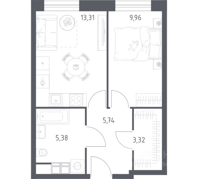 В продаже 1-комнатная квартира в корпусе 1 ЖК 'Пятницкое 58'. Квартира располагается на 26 этаже, общая площадь 46.31 м2.