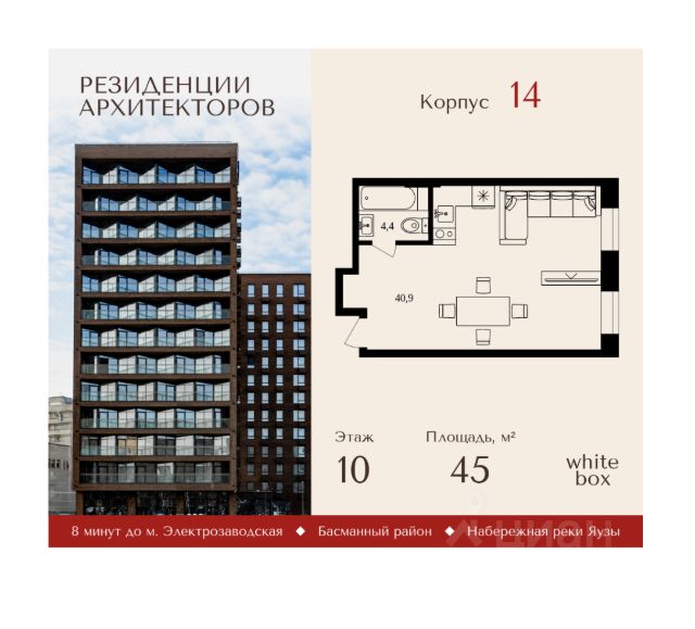Продаются просторные 1-комнатные апартаменты общей площадью 39 м² на 5 этаже в сданном жилом квартале "Резиденции Архитекторов" вблизи с метро Электрозаводская и БКЛ Электрозаводская. Жилой квартал "Резиденции архитекторов" - удобный и тщательно продуманный проект для тех, кто ценит высокий уровень качества жизни. Подземный отапливаемый паркинг, разнообразная инфраструктура на первых этажах, малые архитектурные формы, ландшафтный дизайн и собственный пешеходный бульвар - здесь есть всё для яркой и комфортной жизни, работы, творчества и воспитания детей. Проект выполнен в едином принципе геометрии, ритма, сочетания чистых фактур и материалов. Символом бульвара является необычная площадь с большим светопрозрачным навесом, на котором изображена карта Москвы. Планировочные решения "Резиденции архитекторов" — это гордость проекта. Высокие потолки, хорошая инсталляция, панорамные окна, все перечисленное обеспечивает высокий уровень комфорта вне зависимости от площади и этажности. Купить 1-комнатную квартиру в ЖК Резиденции Архитекторов в Москве.