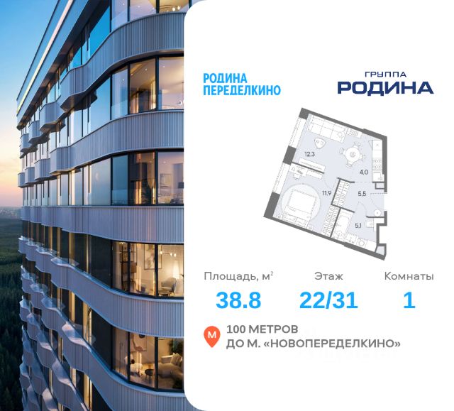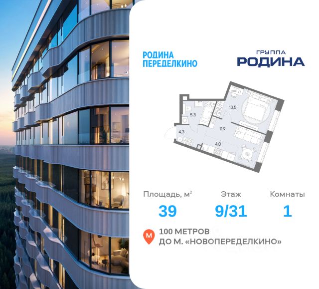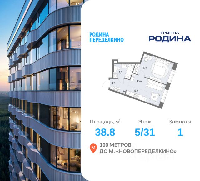 Продаётся 1-комнатная квартира площадью 33.6 м² на 5 этаже в Жилом Комплексе "Родина Переделкино". Первый в России киберспортивный кластер от Группы Родина. Это жилой квартал бизнес-класса на Западе Москвы на границе с Ульяновским лесопарком, состоящий из пяти высотных зданий с подземной одноуровневой автостоянкой. В жилом комплексе широкий выбор вариантов жилья — от компактных студий до просторных 5-комнатных квартир. Помимо комфортных европланировок, представлены уникальные форматы: квартиры с панорамными гостиными, квартиры с террасами на 2 этаже. Преимущества расположения: • 3 минуты пешком до метро "Новопеределкино" • Лесные массивы - Чоботовский лес, Ульяновский лесопарк и Мещерский природный парк. • Прямой выезд на Боровское Шоссе • 30 минут транспортом до делового центра Москва - Сити • 10 минут на машине до аэропорта "Внуково" Развитая инфраструктура: • 5 жилых корпусов • Деловой центр с Welness и SPA • Мультиарена с развлекательным digital - центром • Гастроулица: кофейни, рестораны, стритфуды