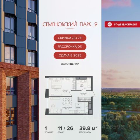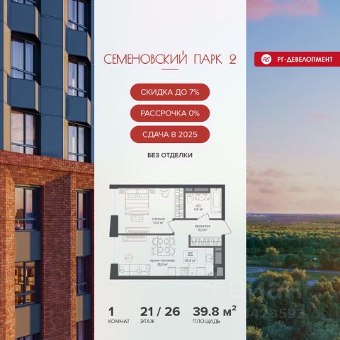 Ипотека для каждого! Полная стоимость кредита от 11,578% до 22,490%. Ставка от 0,11% в АО "Альфа-Банк" фиксируется на 1 год с даты заключения кредитного договора, далее полная стоимость кредита от 25,819% до 28,767% ставка 21,59% до окончания срока кредитования. Первоначальный взнос — от 20% от стоимости квартиры. Срок кредитования — от 3 до 30 лет. Ипотека на весь срок! Полная стоимость кредита от 23,396% до 26,058% со ставкой 14,5%! Первоначальный взнос —от 20,01% от стоимости квартиры. Срок кредитования — от 3 до 30 лет. АО "Банк ДОМ.РФ" универсальная лицензия Банка России 2312 от 19.12.2018. Скидка 7% при покупке квартиры! Цена указана с учетом максимального размера скидки. Продается 1-к квартира 45,9 кв.м. в ЖК "Семеновский парк 2" на 14-м этаже 18 этажного дома. Компания "РГ-Девелопмент" предоставляет скидки на квартиры в жилом комплексе. Акция действительна с 12.09.24 г. до 30.11.25г. включительно. Чтобы воспользоваться предложением, необходимо подписать договор на приобретение недвижимости до 30.11.25г., включительно. Скидка 5% + Рассрочка 0% При приобретении дольщиком квартиры с использованием способа оплаты "Рассрочка 0%", у покупателя также есть право воспользоваться скидкой в размере 5% от полной стоимости квартиры. Условия программы рассрочки: - Первый платеж составляет 20% от стоимости объекта и вносится при заключении ДДУ. - Оставшаяся сумма выплачивается за месяц до планового срока ввода ЖК в эксплуатацию, то есть не позднее 30.11.2025. Прямая продажа от застройщика! Квартиры без отделки. Срок сдачи корпуса - 4 кв. 2025 г. ЖК "Семеновский парк 2" - это идеальное место для того, чтобы стать вашим домом. Проект расположен в исторической части Москвы вблизи Измайловского лесопарка, в 1 км от ЦАО. 4 станции метро отделяют вас от Красной площади и 15 минут на автомобиле - от Садового кольца.