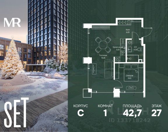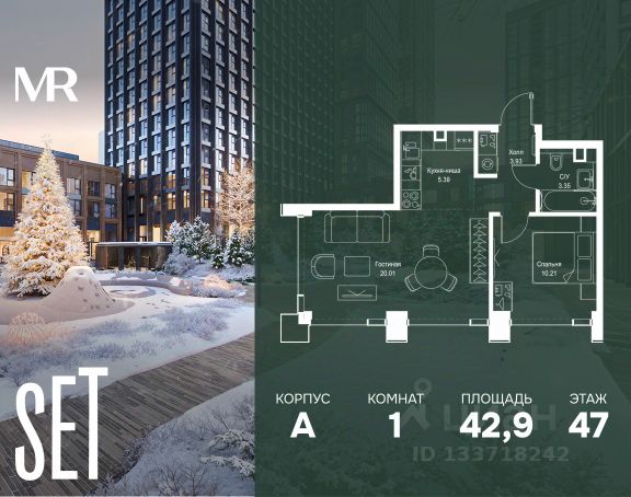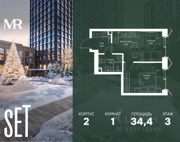 Прямая продажа от застройщика. В ЖК SET продается 1-комнатная квартира площадью 31.05 м², расположенная в корпусе Б, на 56 этаже 59 этажного дома. SET имеет стратегически выгодное расположение в ЗАО, в районе с большой историей и блестящим будущим: между природной зоной долины реки Сетунь и Кутузовским проспектом. В рамках возведения первой очереди предусмотрено три корпуса высотой 18, 45 и 59 этажей. На верхних этажах спроектированы общедоступные смотровые площадки с панорамным обзором на центр столицы. Преимущества проекта: • Функциональные планировочные решения • Контроль проникновения через входную дверь • Система управления освещением и температурой в квартире • Система защиты от протечек с функцией перекрытия воды • Вход в подъезд по биометрическим считывателям Face ID • Скоростные лифты • Двухуровневый подземный охраняемый паркинг на 495 машино-мест Застройка SET включает в себя не только жилые корпуса, но и инфраструктурные объекты. Все необходимое для повседневного комфорта будет расположено в шаговой доступности: • Фитнес-клуб с бассейном • Ведущая городская школа, детский сад и школа искусств • Центр культуры и досуга • Медицинский центр • Кафе и рестораны Расположение комплекса: Пешком: • Метро "Давыдково" - 17 минут • Парк "Долина реки Сетунь" - 3 минуты • Открытие новых станций метро в шаговой доступности в будущем Инфраструктура: Разнообразить свой день резиденты VEER смогут также проводя больше времени на свежем воздухе. Двор разделен на 4 зоны разных эмоций и действий, которые пересечены и соединены веерными прогулочными маршрутами: • Спортивная площадка устроена в глубине ""Кленовой рощи"" • В ""Чайном домике"" будет создан навес с утеплением для отдыха в любую погоду • Площадки для детей воплотятся в ""Волшебный лес"" с цветами, зеркалами и световым дизайном • ""Центральная площадь"" устроена у водного оазиса живописного пруда. " На машине: • "Москва-Сити" - 15 минут • Садовое кольцо - 20 минут • ТЦ "Океания" - 8 минут • ТЦ "Времена года" - 13 минут • Сколково - 12 минут • Гребной канал - 17 минут Компания MR предлагает своим клиентам специальные условия приобретения квартир в рамках программ ипотечного кредитования от банков-партнеров.