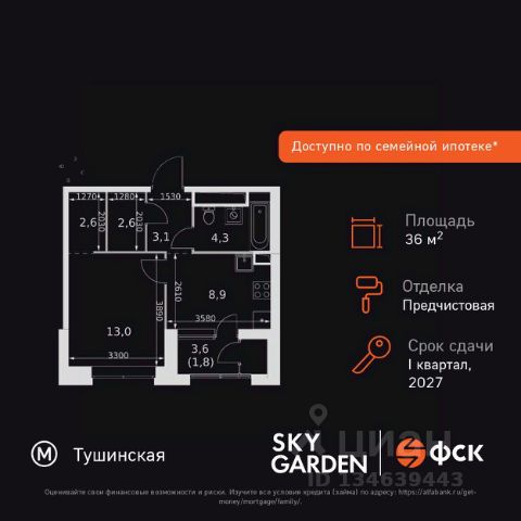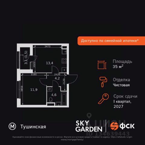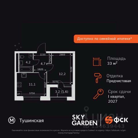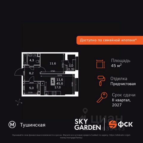 Прямая продажа от застройщика! Жилой Комплекс бизнес-класса. Продаётся 1-к квартира номер 142 общей площадью 41.7 кв.м. на 19-м этаже 29 этажного здания. Без отделки. Цена с учётом скидки. Особенности квартиры: - Организуем показ в удобное для вас время! - Мастер-зона с гардеробной. Просторное место для отдыха и удобного хранения вещей. - Просторная спальня, в которой можно разместить большую кровать. - Линейная планировка - максимальная функциональность и удобство. - Можно оборудовать 2 или более рабочих места - пространство для нескольких человек. - Лоджия - уютное место для отдыха и тишины. Квартира без отделки. Чистый холст для воплощения интерьера вашей мечты. Информация о комплексе: ЖК "Скай Гарден" в Покровском-Стрешнево: гармония природы и мегаполиса. Живите среди зелени одноимённого парка, рек и каналов с чистым воздухом, сохраняя все преимущества городской инфраструктуры. Идеальный баланс для тех, кто ценит природу без компромиссов в комфорте. Транспортная доступность: Всего в 12 минутах пешком до м. Тушинская и 15 минутах до станции Тушинская МЦД. На автомобиле: 2 км до Волоколамского шоссе, 2,5 км до МКАД и 15 км до Садового кольца Внутренняя инфраструктура: К вашим услугам игровые площадки для детей с горками и фонтанами. Йога на газоне, воркаут, велопарковки. На территории: поликлиника, аптека, супермаркет, зоны отдыха. Игровая комната в лобби, хранилище для велосипедов в подъездах. Рядом: кафе, пекарня, мастерские, секции. Парк 3,5 га с набережной для прогулок. Всё для жизни и спорта в шаговой доступности. Квартира без отделки - чистый холст для вашего интерьера.