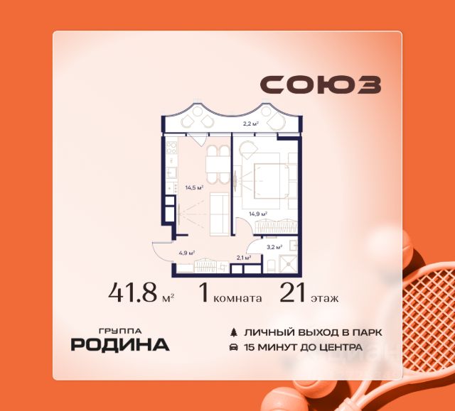 Рассрочка 0% Продаётся 1-комнатная квартира площадью 43 м² на 16 этаже в Жилом Комплексе "Союз". Квартал здоровой жизни премиум-класса с рекордным количеством олимпийских видов спорта: - Ледовая арена для хоккея и фигурного катания, - Футбольные поля для тренировок, - Спортивный зал для фехтования, - Бассейн на 6 дорожек, - Центр единоборств, - 4 крытых площадки для настольного тенниса, - 7 теннисных кортов (крытых и открытых), - 4 крытых площадки для сквоша, - Легкоатлетический стадион, - Площадки для баскетбола и волейбола. Уникальные форматы квартир с мастер-спальнями, приватными террасами, балконами, а также пентхаусы с открыточными видами на город. Все квартиры продаются с отделкой Shell&Core и панорамным остеклением. Расположение Пешком: - 2 мин. до парка "Сад Будущего"; - 6 мин. до ст. м. "Ботанический сад"; - 6 мин. до ст. МЦК "Ботанический сад"; - 6 мин. до парка "Леоновская роща"; На автомобиле: - 2 мин. до СВХ (МСД); - 5 мин. до Проспекта Мира; - 10 мин. до ТТК; - 15 мин. до Садового кольца; - 25 мин. до аэропорта "Шереметьево". Благоустройство - собственная спортивная инфраструктура 7 Га; - зона для пикников; - игровые и спортивные площадки для детей всех возрастов; - розарий, а также сосновые, каштановые и дубовые аллеи; - площадки под открытым небом для занятий спортом и йоги; - игровые комнаты для детей; - лаунж-зона для резидентов; - просторная переговорная для деловых встреч; - премиальный ресторан "Шабада" Сосо Павлиашвили с водными арт-объектами на прогулочной аллее, садом ароматных трав и сценой под открытым небом; - кафе, химчистки, аптеки и супермаркеты рядом с домом. Окружение - 8 парков: Сад Будущего, Леоновская роща, Хуамин, Главный ботанический сад РАН, Шереметьевская дубрава, Останкино, парк спорта "Яуза", пойма реки Яуза и музей-усадьба "Останкино"; - 3 ВУЗа: ВГИК, РГСУ, МГПУ; - 12 школ, в том числе: школа 1499 им. И.А. Докукина (топ 100), Brookes Moscow, IThub школа; - 18 детских садов, в том числе билингвальный ALERTUM KIDS; - один из крупнейших океанариумов Европы "Москвариум"; - один из крупнейших в Европе торгово-развлекательных центров "Европолис".