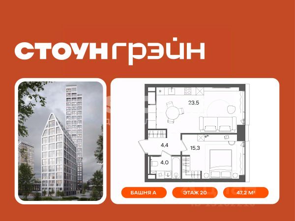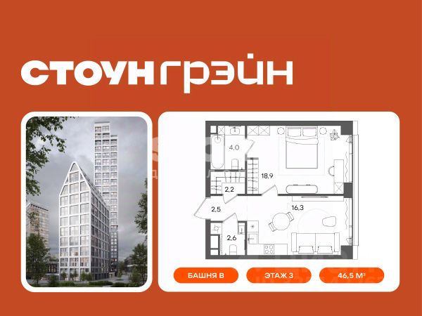 В продаже эргономичная студия с большой ванной комнатой и приватной, светлой спальней с панорамными окнами, выходящими на южную сторону. Возможность организовать угловую кухню с мягкой зоной отдыха позволит сделать жилье еще более уютным и функциональным. Студия - идеальный выбор для студента, а также популярный формат квартир для сдачи в аренду. Жилой комплекс бизнес+ класса СТОУН Грэйн находится на Юго-Западе Москвы в Обручевском районе. Расположение вблизи двух станций метро и ключевых транспортных магистралей обеспечивает быстрый доступ к центру столицы и соседним районам: - 2 мин. до м. "Калужская" и "Воронцовская" - Удобный выезд на ул. Обручева и ул. Профсоюзную - 2,5 км до Ленинского проспекта - 6 км до ТТК и МКАД - 10 км до Садового кольца и Рублёвского шоссе - 30 мин. на автомобиле до "Москва-Сити", Лужников и МГУ Проект расположен в районе с развитой образовательной и социальной базой. Рядом с жилым комплексом находятся ведущие вузы Москвы, лучшие детские сады и школы. Среди других особенностей - зеленое окружение, близость к Воронцовскому парку. Проект отличает выверенная архитектура от Kleinewelt Architekten. Башня А высотой в 45 этажей станет архитектурной доминантой с выразительными поясами балконов галерейного типа и эксклюзивными лотами со вторым светом. Камерная 20-этажная башня Б со скатной крышей будет включать двухуровневые квартиры с террасами. На закрытой благоустроенной территории разместятся игровые площадки для детей разных возрастов, workout-зона, павильоны для работы на открытом воздухе. Жители также смогут воспользоваться дополнительными зонами отдыха и инфраструктурой на территории, прилегающей к офисному кварталу класса А STONE Калужская. Комфортный микроклимат в квартирах обеспечивают современные инженерные решения. Для удобства жителей предусмотрен двухуровневый подземный паркинг на 270 машиномест. STONE - девелопер коммерческой и жилой недвижимости классов бизнес и премиум в Москве с 19-летним опытом. Сегодня занимает лидирующую позицию на офисном рынке (рейтинг РБК). В портфеле девелопера представлено 3 млн кв. м построенных, строящихся и проектируемых объектов, из которых более 1 млн кв. м находятся в стадии строительства. Компания имеет самый масштабный проектный портфель офисной недвижимости класса А на московском рынке (данные NF Group) и возглавляет топ устойчивых девелоперов, согласно исследованию FResearch - Forbes. В настоящий момент девелопером представлено 16 бизнес-центров класса А, а также 3 жилых комплекса бизнес+ класса. ID.28738