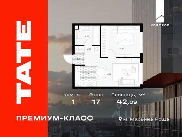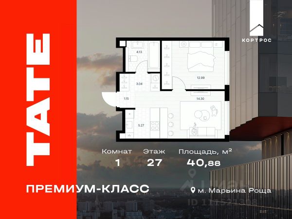 Продается 1-комнатная квартира от застройщика в ЖК премиум-класса TATE на 16 этаже. Общая площадь 40,81 м². Отделка предчистовая (white box). 1 санузел. Вид из окна на Парк Сокольники. Башня A. Срок сдачи: 2 кв. 2027 Выдача ключей: 4 кв. 2027 Проект расположен на границе с ЦАО в районе Марьина Роща на улице Веткина. В шаговой доступности находится метро Марьина роща (5 минут), парки "Останкино" и "Сокольники" (15 минут). До центра столицы время в пути составит 15 минут на авто. На территории премиум квартала откроют спа- и фитнес-центр, бассейн, оборудуют детские и спортивные площадки. Предусмотрен подземный двухуровневый паркинг с контролем доступа и лифтом на жилые этажи. Паркинг рассчитан на 568 машино-мест. Доступ в жилой комплекс осуществляется по биометрическому контролю - Face ID. Территория закрытая с видеонаблюдением и консьерж-сервисом 24/7. Особенности ЖК: - 2 башни высотой от 41 до 49 этажей. - Исторический район; - Панорамная лаундж-зона на высоте 140 м; - На 4041 этажах видовые пентхаусы площадью до 200 м²; - Два вида отделки: лаконичный и монохромный WhiteBox или готовые интерьеры с безупречным чувством меры - Лобби с потолками высотой почти 6 м; - В отдельном 6-этажном здании на территории будут: просторный фитнес-центр с бассейном, концептуальный ресторан, офисные пространства; - Детские зоны и спортивные площадки; - 6 скоростных лифтов; - Лапомойки для животных; - Безбарьерная среда.
