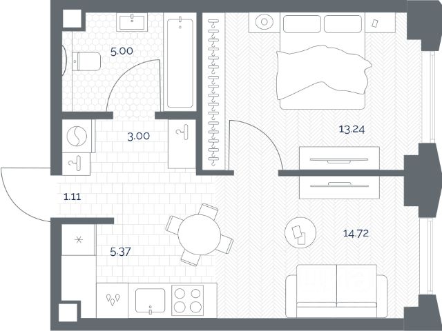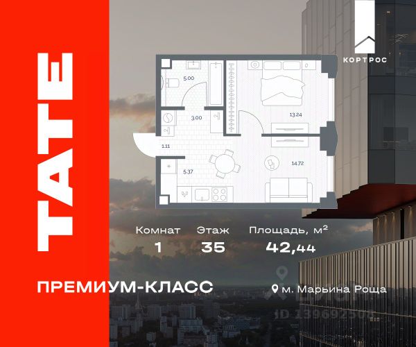 Успейте купить со скидкой 14%! Продается 1-к квартира общей площадью 42.66 м2 с предчистовой отделкой в ЖК премиум-класса ТАТЕ на 16-м этаже 41-этажной башни Б. ТАТЕ — жилой комплекс премиум-класса в историческом районе Марьина Роща на границе СЗАО и ЦАО. Две минималистские башни (41-49 этажей) с панорамными видами на Москву, Инфраструктура: светлые лобби с потолками 6 м, арт-лестница на террасу. Спа, фитнес с бассейном, детские/спортивные площадки. Трехуровневое благоустройство от WOW HOUSE. Доступ в жилой комплекс осуществляется по биометрическому контролю. Преимущества: - Авторский минимализм от ГК "КОРТРОС" (топ-10 RAEX) - Панорамные окна, потолки 3,02-4,5 м - Предчистовая отделка - Лаундж на 39 этаже для резидентов с панорамными видами на Останкино, ВДНХ - 6 скоростных лифтов (45 сек на этаж) - Безбарьерная среда, арт-пространства - Спа/фитнес, бассейн, паркинг с сервисами - Закрытая территория с видеонаблюдением и консьерж-сервисом 24/7 - Подземный паркинг на 545 машиномест с зарядками для электромобилей Транспорт: - 5 мин пешком до МЦД-2 - 5 мин до метро "Марьина Роща" - 15 мин до центра Москвы на автомобиле - 10 мин до ТТК - 20 мин до Москва-Сити