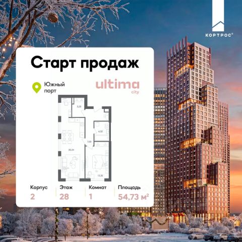 Указанная акционная стоимость доступна при 100% оплате или ипотеке без субсидирования. Цена действует до 18.01.2026 23:59:00. Стоимость без акции 22307520. Старт продаж! Продаётся 1-комнатная квартира от застройщика ГК "КОРТРОС" в жилом комплексе бизнес-класса ULTIMAcity. Квартира расположена на 2 этаже 52 этажного корпуса 2. Общая площадь 48,92 м². Без отделки. В квартире: • Мастер-спальня • Гардеробная • Два сан. узла ULTIMAcity — жилой комплекс бизнес-класса в перспективном районе на юго-востоке Москвы. На его территории появятся 9 башен на 756 этажей, двухуровневый подземный паркинг, собственная инфраструктура, включая детский сад и школу. Всего девелопер благоустроит территорию в 2,6 га. Ближайшая станция метро — "Южный порт". Она откроется в 2028 году и будет находиться в 2-х минутах ходьбы. А прямо напротив расположится остановка водного автобуса-электрохода "Синичка". Дорога от квартала будет удобна и для автомобилистов: - до Кремля — 12 км - до МКАД — 12 км - до выезда на ТТК — 3 км - до Садового кольца — 8 км В двух корпусах первой очереди ULTIMAcity этажностью 45 и 52 реализуется 1 079 квартир с продуманными, рациональными планировочными решениями. В ассортиментной линейке представлены однокомнатные квартиры от 28,2 до 61 кв. м, двухкомнатные лоты от 44,3 до 95,4 кв. м, квартиры с тремя (71 — 115,57 кв. м) и четырьмя спальнями (106,6 — 114,97 кв. м). В экспозиции также есть квартиры с террасами, лоджиями, тремя и четырьмя санузлами, а также с функциональными нишами-кладовыми на кухнях. Запроектированы и эксклюзивные двухуровневые резиденции со вторым светом, в том числе с видом на Москву-реку, площадью от 77,7 до 141,9 кв. м. В рамках проекта запланировано строительство 9 корпусов, школы на 500 учащихся и детского сада на 225 мест. Еще будет создана продуманная инфраструктура для жителей: детские и спортивные площадки, амфитеатр для мероприятий, беседки и теплицы для садоводства, коворкинг, детский клуб и ресторан с открытой террасой. Доступ в жилой комплекс осуществляется по биометрическому контролю - Face ID. Вокруг квартала будет приватная территория с видеонаблюдением и консьерж-сервисом 24/7. Лобби корпусов будут иметь двойные выходы: на улицу и во внутренний закрытый двор.