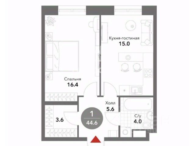 Квартира расположена на 7 этаже 19-этажного монолитного дома, СРОК ВЫДАЧИ КЛЮЧЕЙ КОНЕЦ 2025 ГОДА. Общая площадь — 43,1 кв. м, высота потолков — 3,3 м. Жилая площадь составляет 14,5 кв. м, площадь кухни — 18,8 кв. м. Окна выходят не на жд пути. В квартире есть совмещённый санузел.