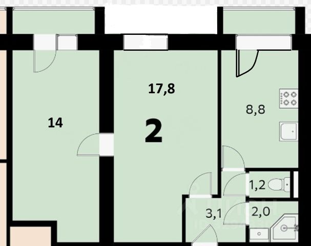 1-комн. кв., 43,8 кв.м -------------------- Продажа квартира, город Зеленоград, корпус 2044, этаж 2, кв. 92 --------------------