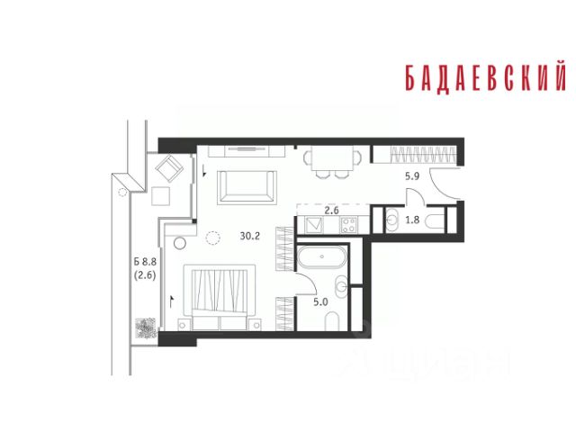 Современная, дизайнерская 1-комнатная квартира с большой кухней 10,0кв.м., общей площадью 33,8кв.м. + большая лоджия 8,0кв.м. = 41,8кв.м., жилая комната 19,0кв.м. - зонированная под ЕВРО-ДВУШКУ.