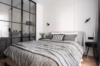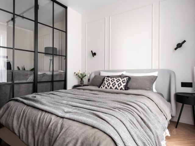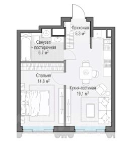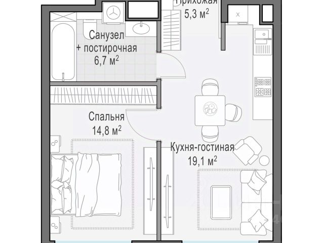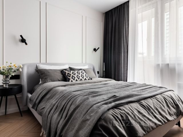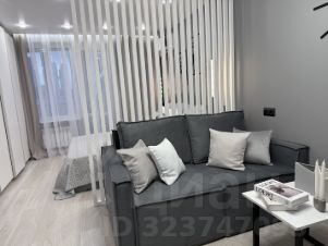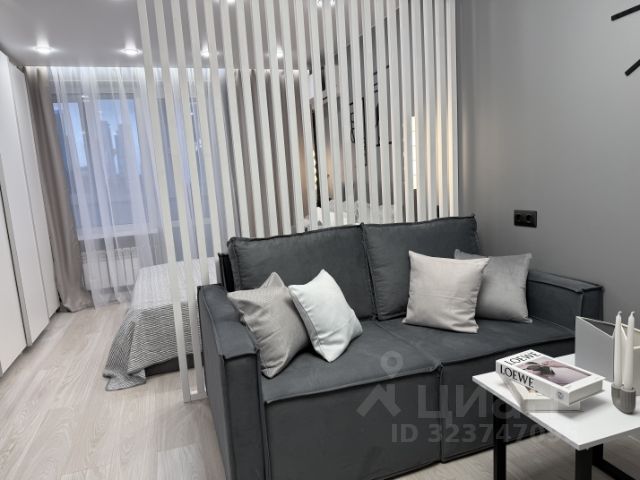 20-ти метровая комната разделена декоративной перегородкой на 2 зоны спальню и гостиную.