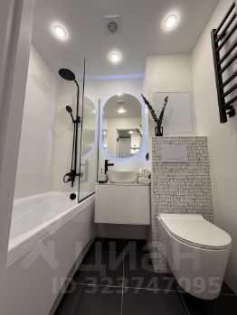 Совмещенный санузел оснащен качественной сантехникой, установлен электрический полотенцесушитель, зеркало с бесконтактной подсветкой, стены и полы выложены плиткой.