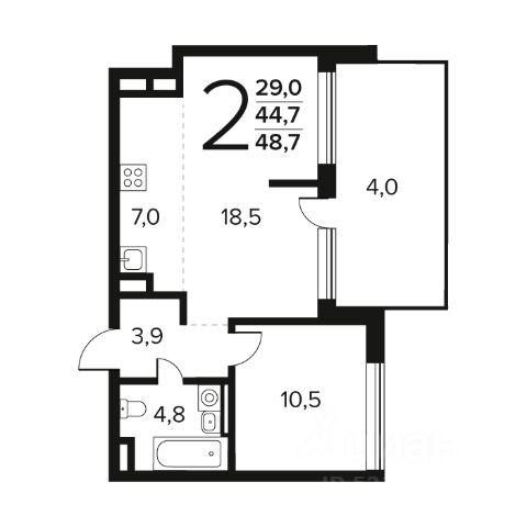 Квартира расположена на 5 этаже 12-ти этажного монолитно-кирпичного дома 2025 года постройки. Общая площадь квартиры 53,7 м2 (с лоджией 54,5 м2), жилая площадь 29 (15,5/13,5) м2, кухня-столовая 12,5 м2, из кухни выходит застекленная лоджия, СУ раздельный, имеется ниша под гардероб. Планировка изолированная.