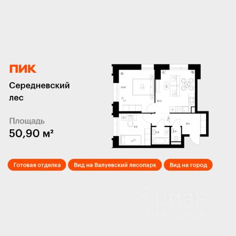 Продается двухкомнатная квартира без отделки в 7 фазе города-парка "Первый Московский". Общая площадь квартиры - 54,3 кв. м, этаж 1 из 20. Срок сдачи - 1 квартал 2027 года. Тип дома - монолитный. ТОЛЬКО ДО 28 ФЕВРАЛЯ: • Рассрочка до 13 месяцев с первоначальным взносом от 10% • Ежемесячный платеж от 50 000 руб. *подробную информацию по скидкам и акциям уточняйте в отделе продаж. Корпус состоит из 3 секций. Город-парк "Первый Московский" расположен всего в 7 км по Киевскому шоссе от МКАД на территории Новой Москвы. Из города-парка прямой выезд на Киевское шоссе и трассу Солнцево-Бутово-Варшавское шоссе. ТРАНСПОРТНАЯ ДОСТУПНОСТЬ: - 5 мин. на личном автомобиле или 10 мин. на автобусе 189 и 147 до станции метро "Филатов Луг" - 25 мин. пешком до станции метро "Филатов Луг" ИНФРАСТРУКТУРА: Около 7 фазы запланировано строительство детского сада, школы, 2 многоуровневых паркингов. Также на территории проекта есть все необходимые объекты действующей социальной и бытовой инфраструктуры: 8 детских садов, 5 школ, ТЦ, магазины, паркинги, аптеки и др. БЛАГОУСТРОЙСТВО: - Дворы без машин - Игровые зоны для детей, зоны для занятия спортом, зоны для отдыха с навесами/качелями - Детские площадки разделены по возрастным группам - Пешеходный и веломаршрут с двухполосной велодорожкой 2,5 м в ширину - Озеленение с растениями всесезонного цветения ОСОБЕННОСТИ АРХИТЕКТУРЫ: В каждой секции 3 корпуса предусмотрены: - колясочные во входных группах - кладовые помещения с -1 по 20 этажи - коммерческие помещения на 1 этажах - по 4 лифта: 2 пассажирских, 2 грузовых - видеонаблюдение, установленное в холлах первых этажей, у подъездов и на прилегающей территории АВТОРСКИЙ ДИЗАЙН: Входные группы выполнены по авторскому дизайну, оснащены системой "тёплый пол". В каждой входной группе будет располагаться комфортабельная зона ожидания с мягким диваном, акцентными пуфами и столиком.