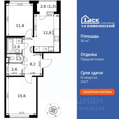 БЕЗ ПЕРВОНАЧАЛЬНОГО ВЗНОСА! • ИПОТЕКА 10% ДЛЯ ВСЕХ БЕЗ НАЦЕНОК • ДОСТУПНО ПО СЕМЕЙНОЙ ИПОТЕКЕ Прямая продажа от застройщика! Жилой Комплекс класса Комфорт. Продаётся 2-к квартира номер 110 общей площадью 46 кв.м. на 9-м этаже 17 этажного здания. Отделка Whitebox. Цена с учётом скидки. Особенности квартиры: - Угловая планировка - больше пространства для ваших идей. - Окно в ванной - натуральное освещение для уюта и комфорта. - Увеличенное количество окон - дополнительное освещение и свежий воздух. - Раздельный санузел - больше удобства для всех членов семьи. - Евроформат - просторное и удобное жилье с отличной планировкой. - Линейная кухня - функциональность и практичность в одном решении. - Гардеробная - удобство для хранения и организации вещей. - Ниша под шкаф - компактное и удобное место для вещей. - Лоджия - уютное место для отдыха и тишины. Квартира с предчистовой отделкой (White box). Вам не придется заниматься черновыми и трудоёмкими работы, а чистовую отделку и дизайн - сделайте на свой вкус. Информация о комплексе: Квартал класса комфорт плюс, где современное городское пространство граничит с удивительной природой вокруг. 1-й Химкинский расположен на территории в 102 га и органично вписан в природное окружение Химкинского леса и канала им. Москвы. В проекте предусмотрена богатая коммерческая инфраструктура с собственным торговым центром, общеобразовательные учреждения и социальные объекты. Изюминкой жилого комплекса будут спортивно-оздоровительный комплекс с термами и SPA и семейный парк развлечений. Транспортная доступность: ЖК "1-й Химкинский" дает возможность выбрать любой способ передвижения как до города, так и до самых разных объектов, которые могут представлять интерес для его жителей. Не важно, какой способ передвижения вы предпочитаете, успевать всегда и везде можно вне зависимости от выбора транспорта. - 8 мин. пешком (800 м) до остановки "Золотая Арка" -10 мин пешком (1 км) до остановки "Поворот на Ивакино" Внутренняя инфраструктура: - Безопасность: закрытые дворы без машин, безбарьерная среда и сквозные подъезды, камеры на детских площадках с возможностью трансляции на смартфоне - Идеальный отдых в кругу семьи: семейный парк развлечений на территории, торговый центр (2-х этажный) общей площадью более 8 тыс. кв. м с фудкортом - Образование: 3 детских сада и современная муниципальная школа на 2450 мест - Спортивная среда: закольцованный веломаршрут с навигацией, спортивный комплекс с термами, закрытый тренажерный зал и зоны ворк-аута - Социальные объекты: поликлиника со станцией скорой помощи, пожарное депо - Подземный паркинг и кладовые помещения на -1 этаже, станция техобслуживания и автомойка на территории