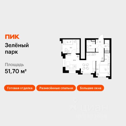 Продаётся 2-комн. квартира площадью 51,2 кв.м на 8 этаже 13 этажного дома (Корпус 5.3, Секция 3) проекта ПИК Зелёный парк. Светлый просторный подъезд на уровне земли, функциональная планировка, большие окна, c отделкой. Большой квартал с оригинальной архитектурой в обжитом районе Зеленограда. От него до станции МЦД-3 "Зеленоград-Крюково" — 20 минут пешком, до Кутузовского шоссе можно доехать на машине за 3 минуты, а до Пятницкого шоссе — за 5 минут. Характер "Зелёного парка" отражён в архитектуре. Квартал состоит из уютных разноэтажных блоков с оригинальными акцентами. Цветовая палитра проекта спокойная и сдержанная: оттенки белого и коричневого сочетаются с пастельным розовым и мятным. В проекте запланированы также два детских сада, две школы и паркинг. На первых этажах откроются магазины, кафе и другие сервисы — чтобы купить кофе и свежий хлеб к завтраку, можно будет просто спуститься на лифте. В уютных дворах-парках появятся места для отдыха, детские площадки, кофейни и зоны отдыха. Рядом — Зеленоградский лес, Парк Победы и Михайловский пруд, где можно гулять и заниматься спортом. У жителей "Зелёного парка" будет возможность получить московскую прописку. Для любителей спорта в 10 минутах пешком от квартала — велодром с трассой, физкультурно-оздоровительный комплекс Горизонт, а также лыжероллерная трасса длиной около 3 км. Артикул 1031086 (Застройщик АО "СПЕЦИАЛИЗИРОВАННЫЙ ЗАСТРОЙЩИК "ЗЕЛЕНОГРАДСКИЙ") 2-комнатная квартира до 18 млн. рублей в Зеленограде.