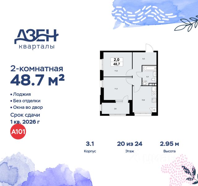 Продается 2-комн. квартира, без отделки в ЖК "Новые Ватутинки. Квартал у реки". Общая площадь: 41.7 кв.м., жилая: 22.2 кв.м., площадь кухни: 6.0 кв.м. Этаж: 5. Район расположен всего в 14 километрах от МКАД по Калужскому шоссе, в центральной части Новой Москвы. Добраться сюда можно на автобусах и маршрутках от станций метро "Ольховая", "Теплый Стан" и "Бульвар Адмирала Ушакова". Время в пути от "Теплого Стана" и "Ольховой" занимает в среднем до 20 минут, даже в часы пик. В 2025 году рядом начнется строительство новой станции метро "Десна" (Троицкая линия), которая будет находиться в пешей доступности. Благодаря удачному расположению и развитой инфраструктуре Новые Ватутинки становятся одним из культурных и образовательных центров Новой Москвы. Строительство нового микрорайона началось с трех жилых корпусов, оснащенных подземными паркингами, индивидуальными кладовыми и коммерческими помещениями на первых этажах. Заречный имеет два удобных выезда на Калужское шоссе, что обеспечивает свободный проезд без заторов. В будущем жители также смогут пользоваться станцией метро "Десна", выбрав общественный транспорт. В районе предусмотрено строительство двух образовательных комплексов с детскими садами и школами, поликлиники и торгового центра Сквозь весь микрорайон — от будущей станции метро до набережной и парка "Андерсен" — протянется пешеходный бульвар длиной 1,5 км с уютными скверами, мини-площадями и садами. Архитектурная концепция предусматривает постепенное снижение этажности ближе к бульвару, создавая приятную для жизни и прогулок городскую среду. Принцип "город в гармонии с природой" реализован через дворы без машин и безбарьерное пространство на всей территории. Внутренние дворы будут предназначены для тихого отдыха и детских игр, а активные зоны разместятся на крупных плейхабах и в общественных пространствах. "Андерсен" станет центром активного досуга: здесь запланированы вело- и пешеходные маршруты, спортивные площадки, зоны для индивидуальных тренировок на свежем воздухе, а также места для рыбалки, сапбординга и тюбинга. Квартирный фонд отличается разнообразием планировок и продуманной эргономикой: просторные квартиры, большие лоджии, по две ванные комнаты. Свободные планировки позволят легко зонировать пространство под личные нужды — создать уютную спальню, рабочее место или гостиную. В цокольном этаже предусмотрены кладовые для хранения сезонных и крупных вещей, а также подземный паркинг с индивидуальными и семейными машино-местами. Спуститься к автомобилю можно прямо из квартиры — на лифте. Проект включает систему видеодомофонии: жители смогут получать уведомления о визитах гостей в режиме онлайн, открывать входную дверь удалённо, сохранять снимки с панели вызова, а также при желании — подключить наблюдение за камерами в лифтах через мобильное приложение. Выдача ключей в 2027г.