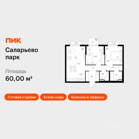 Продаётся 2-комн. квартира площадью 60 кв.м на 5 этаже 14 этажного дома (Корпус 69.2, Секция 2) проекта ПИК Саларьево парк. Светлый просторный подъезд на уровне земли, функциональная планировка, большие окна, c отделкой. Жилой район "Саларьево парк" расположен в Новой Москве, в четырёх километрах от МКАД по Киевскому шоссе. Две станции метро: "Саларьево" и "Филатов луг", — находятся в пешей доступности от проекта. Дойти до них можно за 510 минут. В квартале уже создана качественная среда, где есть абсолютно всё для полноценной жизни, работы и отдыха. Благодаря удобному расположению проекта всё важное будет рядом: детские сады, школы, кафе и рестораны, шопинг в торговых центрах, фитнес и даже аэропорт. Все корпуса в квартале гармонично сочетаются, образуя единую городскую среду. Между собой их объединяет невысокая этажность и натуральная цветовая гамма. Здесь приятно гулять и проводить время на улице всей семьёй. В "Саларьево парке" создана уникальная образовательная среда, включающая в себя шесть школ, рассчитанных на 6 250 учеников. Две из них уже открыты, их посещает 2 300 детей. Также на территории "Саларьево парка" находится 12 детских садов, один из которых с бассейном. Сейчас уже открыты 7 садов. В "Саларьево парке" открыта уникальная игровая площадка — PlayHub "Оригами". Здесь есть ручей, горка-труба и рельефные холмы. Взрослые смогут отдохнуть в уютном кафе, пока дети играют. Также на территории проекта есть SportHub — большая спортивная зона, разделённая по интересам и возрастам. Здесь можно заниматься разными видами спорта: футболом, баскетболом, волейболом и стритболом. Зимой центральную часть площадки превращают в каток. Во дворах-парках жилого квартала есть места для отдыха, детские и спортивные площадки. На первых этажах домов расположены магазины, кафе и полезные сервисы. Также вблизи проекта есть несколько масштабных торговых центров. До ТЦ "Саларис" пять минут пешком, до "Рио", Metro Cash & Carry и "Леруа Мерлен" — пять минут на автомобиле. Артикул 1023471 (Застройщик ООО "Специализированный Застройщик "Тирон")