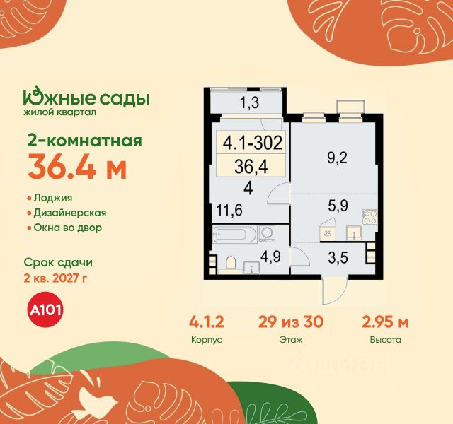 Продается двухкомнатная квартира 511 в новостройке ЖК "Южные Сады" по адресу Москва, ЮЗАО, Южное Бутово, ул. Бартеневская, д. 16. Общая площадь квартиры - 45.70 кв. м., этаж 18 из 22, секция 5. Тип проекта, по которому построен дом - монолит, компания-застройщик - ООО "А101". Стоимость квартиры - 19946679 Р. Срок сдачи - 2 квартал 2027. ПРЕДЛОЖЕНИЯ ОТ ЗАСТРОЙЩИКА В ФЕВРАЛЕ 2026: Скидки до 10% на все квартиры. Только в офисах продаж до 28 февраля. Ипотека от 13,9 % для всех! На весь срок. "Семейная ипотека" вернулась. Ставка от 3,5 % на весь срок! Без удорожания! Выгодное ипотечное комбо: Ипотека от 2200 р./мес. и от 6 % после рождения ребёнка! Ипотека для всех "Держи пять!" - ставка 5 % на 2 года! *более подробную информацию по скидкам и акциям уточняйте в отделе продаж "Южные сады" на юго-западе Москвы - это жилой комплекс монолитных домов с авторской архитектурой, холлами в средиземноморском стиле, колясочными, современными лифтами, паркингом и кладовыми. Южную атмосферу в районе создадут: - перголы с вьющимися растениями, живые изгороди, садовые дорожки - цветущие, плодовые и вечнозелёные растения - стилизация под средиземноморский ландшафт - амфитеатр и игровой кластер со скалодромом. За безопасность "отвечают" закрытые дворы без машин с доступом только для жителей дома, видеонаблюдение, вход по магнитным ключам. Рядом ландшафтный парк "Южное Бутово", Черневские пруды: театры, танцплощадка, крытые беседки, детские и спортивные комплексы, пикниковые зоны, пешеходные дорожки, деревянные настилы. На первых этажах домов: супермаркеты, кафе, банки, фитнес, пекарни. В пешей доступности - торговые центры, гипермаркет, ФОК, действующая инфраструктура. Для семей с детьми - кружки, секции, детские клубы,центры развития, языковые школы. Преимущества "Южных садов": - атмосферное "средиземноморское" благоустройство - 3 станции метро: "Бунинская аллея", "Улица Горчакова", "Новомосковская" - в пределах 1,6 км - в окружении - развитая инфраструктура обжитой локации - в пешей доступности - Бутовский лесопарк