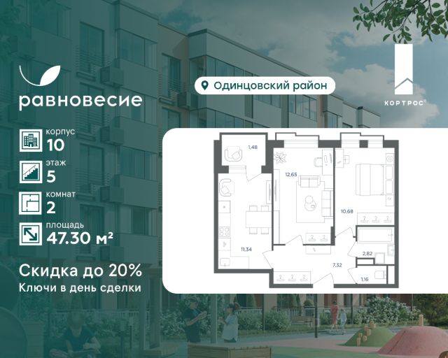 ЖК "Равновесие" предлагает апартаменты, где можно совмещать жизнь и любимое дело. Формат подойдёт для небольшого коворкинга, кабинета или студии. Свет, уют и функциональность в каждом метре. Указанная акционная стоимость доступна при 100% оплате или ипотеке без субсидирования. Цена действует до 31.12.2026 23:59:00. Стоимость без акции 9282000. Продаётся апартамент с 2 комнатами общей площадью 42.00 кв. метров на 1 этаже жилого квартала комфорт-класса "Равновесие". На территории комплекса будет возведен детский сад на 360 мест, а на первых этажах жилых домов откроются кафе, магазины и все необходимое для удобства жителей. Локация "Равновесия" выделяется среди других пригородных ЖК разнообразием быстрых маршрутов до Москвы. Для автомобилистов преимуществом станут удобные выезды на Можайское шоссе, Рублёво-Успенское шоссе, Минское шоссе с платной трассой и другие. Также в пешей доступности находятся две ж/д станции — "Жаворонки" и "Здравница". Дорога на электропоезде до делового центра "Москва-Сити" составит всего 35 минут. Особенности ЖК: - Малоэтажная застройка: 4-6 этажей; - Благоустроенный пешеходный бульвар; - Пространства для отдыха и спорта; - Квартиры с террасами на последних этажах; - Квартиры с отдельным входом на первых этажах; - Внутренняя территория квартала свободна от машин; - Безбарьерная среда; - Помещения для хранения детских колясок и спортивного инвентаря.