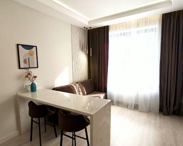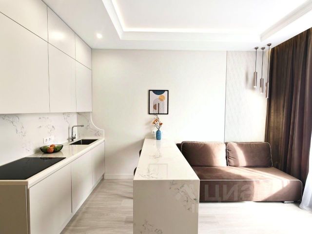 В квартире выполнен светлый дизайнерский ремонт, новая мебель и предметы интерьера, большое количество шкафов и мест хранения, встроенная качественная бытовая техника: холодильник, посудомоечная машина, духовой шкаф, индукционная плита, стиральная машина, кондиционер, качественная европейская сантехника. Квартира полностью укомплектована, остаётся всё: мебель, техника, декор, что позволяет покупателю заселиться быстро и без лишних хлопот!