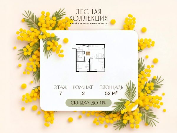 Выгода до 11%. Продажа напрямую от застройщика в жилом комплексе Лесная Коллекция! 2-комнатная квартира на 7-этаже, площадью 52-квм. Лесная Коллекция это продуманный жилой комплекс для тех, кто хочет жить в комфортной городской среде и при этом быть рядом с природой. Удачное расположение, развитая инфраструктура и закрытая территория делают проект удобным для повседневной жизни. Удобная локация и транспорт • Быстрый выезд на Путилковское шоссе • Близость станции метро "Планерная" • Три железнодорожные станции рядом: Химки, Левобережная, Ховрино • Более 40 автобусных маршрутов Локация позволяет легко добираться как в центр города, так и в соседние районы. Территория и окружение • Соседство с престижным районом Куркино • Закрытая благоустроенная территория без сквозного движения • Пространства для прогулок и занятий спортом • Двор примыкает к лесному массиву • Архитектура комплекса выдержана в сдержанном, респектабельном стиле • До 70% окон ориентированы на парк Квартиры и планировки • Удобные и функциональные планировочные решения • Формат комфорт-класса по разумной цене • Максимум естественного света за счёт удачного расположения корпусов Инфраструктура внутри комплекса • Детский сад на территории на 140 мест • МФЦ для решения повседневных вопросов • Коммерческие помещения на первых этажах • Магазины, кафе и салоны красоты прямо в доме • Собственный паркинг рядом с домом Всё необходимое рядом • 78 муниципальных и 42 частных детских сада • 40 школ, включая гимназии и лицеи • 6 колледжей и техникумов • 5 вузов поблизости • Крупные торговые центры и рынки в удобной доступности О застройщике Проекты застройщика "Град Девелопмент" — это более 600 тыс. кв. м реализованной недвижимости, включая клубные форматы и жильё бизнес-класса. Компания известна качеством строительства и соблюдением сроков.