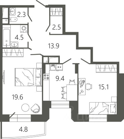 • ✓ В базе Циан 1,4 тыс. 2-комнатных квартир без ремонта Варшавское шоссе