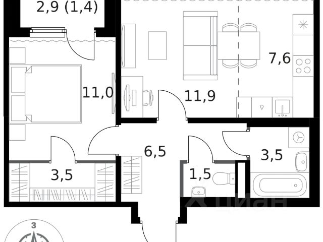 Представляем вашему вниманию уникальное предложение -стильная квартира площадью 46,9 кв. м с предчистовой отделкой White Box в новейшем жилом комплексе.