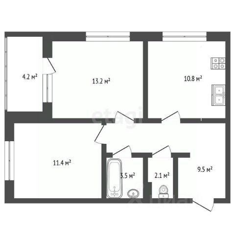 Продаётся 2-комнатная квартира 52, площадью 58,79 м², на 6 этаже в ЖК "MYPRIORITY Нижегородская" корпус 1. Стоимость — от 22286209 руб. Квартира без отделки, планировка угловая, окна на улицу.