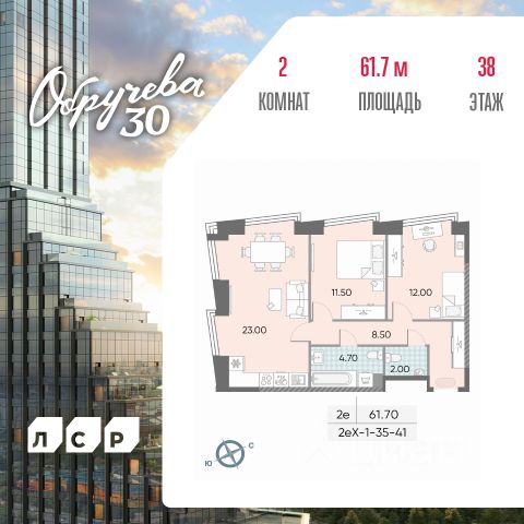 Продается 2-комн. кв-ра площадью 57.30 кв.м на 16 этаже 57 этажного монолитного дома в ЖК "ОБРУЧЕВА 30" от Группа ЛСР. "Обручева 30" - дом бизнес-класса в престижном районе ЮЗАО и шаговой доступности от станции метро "Калужская". Два корпуса неповторимой формы от архитекторного бюро "Камень" с уникальными форматами квартир: от двухуровневых с камином до квартир с террасой. "Клубная" инфраструктура для резидентов: студии йоги и сайкла, тренажерные залы, коворкинг-зона, конференц-залы, кинозал и детские игровые комнаты. Дом бизнес-класса "Обручева 30" возводится в Юго-Западном административном округе в районе Коньково на улице имени В. А. Обручева, видного советского ученого. В пешей доступности от "Обручева 30" находятся две станции метро: "Калужская" Калужско-Рижской линии (5 минут) и "Воронцовская" Большой кольцевой линии (10 минут).