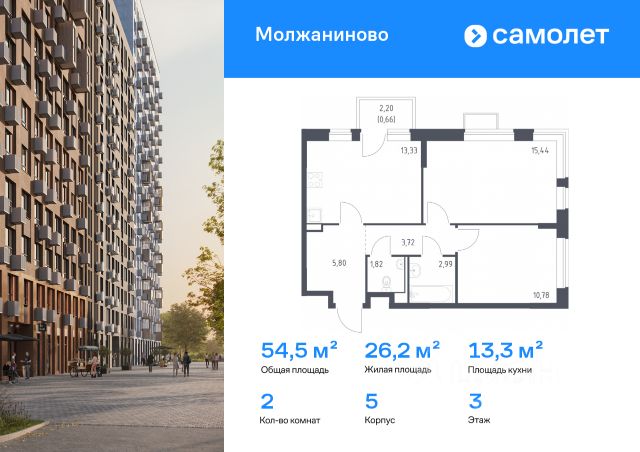 Строим кварталы для жизни с заботой о будущем. Предлагается 2-комнатная квартира комфорт-класса 53,46 кв.м в корпусе 5 на 1 этаже, в ЖК "Молжаниново" Квартира без отделки. Доступность опции "отделка" и возможность комплектации мебелью и декором уточняйте у застройщика. Приобрести квартиру возможно по специальным акциям от застройщика, с текущими условиями акций можно ознакомиться в блоке "Акций". Цена динамическая и может отличаться, уточняйте актуальность у застройщика. Жилой комплекс "Молжаниново" — это место, где каждый маршрут продуман так, чтобы вы проводили больше времени с близкими, а не в дороге. Ставьте паруса в канале имени Москвы, устраивайте пикники в Химкинском лесу или ищите редких птиц в Захарьинской пойме. Жилой комплекс сочетает в себе комфорт городской жизни с преимуществами природы. С одной стороны — московская регистрация, собственная инфраструктура, благоустроенные дворы с детскими площадками и зонами отдыха. С другой — ручей и пруд прямо на территории, а также много леса вокруг.