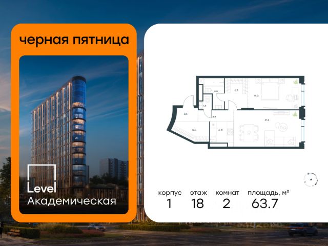 Цена указана с учётом скидки В Академическом районе продаётся 2-комнатная квартира площадью 38.10 кв.м без отделки. Квартира расположена на 14-м этаже 19-этажного жилого комплекса бизнес-класса Level Академическая (компания Level Group). Отличная транспортная доступность: - 1 мин. пешком до станции метро "Академическая"; - 4 мин. на автомобиле до ТТК; - 8 мин. на автомобиле до Садового кольца; - 13 мин. на автомобиле до Кремля. Продуманный архитектурный проект: - современная архитектура от бюро UNK project; - высокие потолки в квартирах до 6,62 м; - окна в пол высотой 2,5-2,68 м, из которых открываются панорамные виды на МГУ, Москва-Сити и другие достопримечательности; - квартиры с моллированным остеклением - радиусные окна открывают увеличенный угол обзора; - более 20 вариантов планировочных решений; - уникальные квартиры с собственным патио, увеличенной высотой потолков и возможностью обустройства дровяного камина; - квартиры сдаются без отделки, что открывает свободу для создания интерьера по своему вкусу. Расположение: Камерный проект из 1 корпуса Level Академическая расположен тихом зеленом районе Москвы, в непосредственной близости к центру города. В округе построено 80 детских садов, 50 школ, 30 вузов, 7 из которых входят в топ100 вузов России: МГУ, МГИМО, РАНХиГС, МИСИС, РУДН, РЭУ им. Плеханова и РГУ нефти и газа им. Губкина. Этот район буквально утопает в зелени парков, начиная с уютного Академического в 6 минутах пешком и заканчивая одним из крупнейших в городе парком 50-летия Октября (12 минут на автомобиле). Общая площадь природных объектов в радиусе 2-6 км от дома - 476,5 га. Внутренняя инфраструктура и благоустройство: На территории комплекса откроется собственный торговый центр, а для отдыха жителей созданы общественные пространства: комфортное лобби площадью 117 м² с дизайнерской отделкой, окнами в пол и потолками высотой 4,5 м, а также две благоустроенные зоны - территория по периметру здания и пространство на стилобате. Во дворе на стилобате предусмотрены детская и спортивная площадки, коворкинг и лаунж-зона на открытом воздухе. Стилобат украсят скульптуры животных - жирафа, зайца и волка, которые станут ярким акцентом внутреннего двора Level Академическая, подчеркивая близость к музею Дарвина. Процент озеленения территории - 58%. Технологии и безопасность: Жителей Level Академическая не коснется ежегодное отключение горячей воды благодаря собственным центральным водонагревателям. Комфорт также обеспечит круглосуточная охрана, безлимитный Wi-Fi в лобби и на территории внутреннего двора, а также видеонаблюдение с возможностью просмотра записей с видеокамер на мобильном устройстве. Удобное перемещение внутри комплекса будут обеспечивать 5 лифтов с доступом в паркинг с жилых этажей.