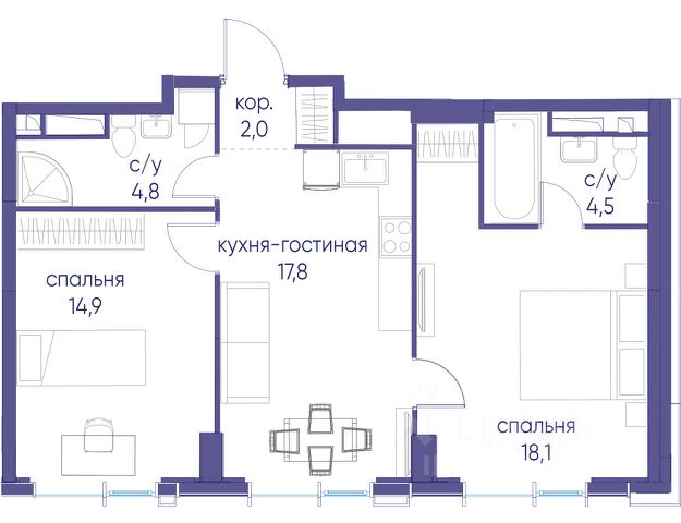 Прямая продажа от застройщика. В ЖК Сет продается 2-комнатная квартира площадью 51.28 м², расположенная в корпусе А, на 31 этаже 52 этажного дома. Сет имеет стратегически выгодное расположение в ЗАО, в районе с большой историей и блестящим будущим: между природной зоной долины реки Сетунь и Кутузовским проспектом. В рамках возведения первой очереди предусмотрено три корпуса высотой 18, 45 и 59 этажей. На верхних этажах спроектированы общедоступные смотровые площадки с панорамным обзором на центр столицы. Преимущества проекта: • Функциональные планировочные решения • Контроль проникновения через входную дверь • Система управления освещением и температурой в квартире • Система защиты от протечек с функцией перекрытия воды • Вход в подъезд по биометрическим считывателям Face ID • Скоростные лифты • Двухуровневый подземный охраняемый паркинг на 495 машино-мест Застройка Сет включает в себя не только жилые корпуса, но и инфраструктурные объекты. Все необходимое для повседневного комфорта будет расположено в шаговой доступности: • Фитнес-Клуб с бассейном • Ведущая городская школа, детский сад и школа искусств • Центр культуры и досуга • Медицинский центр • Кафе и рестораны Расположение комплекса: Пешком: • Метро "Давыдково" - 17 минут • Парк "Долина реки Сетунь" - 3 минуты • Открытие новых станций метро в шаговой доступности в будущем Инфраструктура: Разнообразить свой день резиденты Веер смогут также проводя больше времени на свежем воздухе. Двор разделен на 4 зоны разных эмоций и действий, которые пересечены и соединены веерными прогулочными маршрутами: • Спортивная площадка устроена в глубине "Кленовой рощи" • В "Чайном домике" будет создан навес с утеплением для отдыха в любую погоду • Площадки для детей воплотятся в "Волшебный лес" с цветами, зеркалами и световым дизайном • "Центральная площадь" устроена у водного оазиса живописного пруда. На машине: • "Москва-Сити" - 15 минут • Садовое кольцо - 20 минут • ТЦ "Океания" - 8 минут • ТЦ "Времена года" - 13 минут • Сколково - 12 минут • Гребной канал - 17 минут Компания MR предлагает своим клиентам специальные условия приобретения квартир в рамках программ ипотечного кредитования от банков-партнеров.