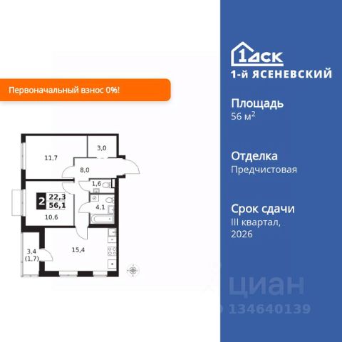 Прямая продажа от застройщика! Жилой Комплекс класса Комфорт Плюс. Продаётся 2-к квартира номер 679 общей площадью 54.7 кв.м. на 10-м этаже 16 этажного здания. Без отделки. Цена с учётом скидки. Особенности квартиры: - Квартиры рядом с метро - м. Корниловская 9 мин пешком - 63 га лесопарка за окнами - Школа c it-кластером и бассейном. 2 детских сада - Просторная спальня, в которой можно разместить большую кровать. - Линейная планировка - максимальная функциональность и удобство. - Гостевой санузел - комфорт и удобство для ваших гостей. - Ниша под шкаф - компактное и удобное место для вещей. - Лоджия - уютное место для отдыха и тишины. Информация о комплексе: В жилом комплексе комфорт-плюс класса "1-го Ясеневского" доступны преимущества двух стилей жизни. Ведь в пешей доступности метро, школа с 25-метровым бассейном и IT-кластером и при этом целых 63 га благоустроенного Троицкого лесопарка под окнами, где так приятно дышать свежим воздухом и слушать пение птиц. Собственная закрытая территория "1-го Ясеневского" представляет собой уютный оазис. Здесь и зеленый освещенный бульвар для прогулок, система велодорожек, маленькая городская площадь, кафе, пекарни и кофе поинты. А еще дворы без машин и многоэтажная парковка. Изюминка территории - фруктовые деревья во дворах и городские сады. "1-й Ясеневский" - всего в 1 км от МКАД, на территории новой Москвы. Жилой комплекс, где есть все необходимое для современного человека. Транспортная доступность: До метро "Корниловская" - 12 минут пешком До метро "Тютчевская" - 25 минут пешком До метро "Теплый стан" - 10 минут на транспорте До метро "Ольховая" - 30 минут на общественном транспорте Личный автотранспорт: Выезд на Калужское шоссе - 500 м МКАД - 1 км Внутренняя инфраструктура: ЖК "1-й Ясеневский" можно назвать идеальным местом для жизни семьи с детьми. Здесь буквально за домом находится Троицкий лесопарк - излюбленное место прогулок молодых родителей. А во внутренних дворах под детские площадки выделены специальные зоны. Они оборудованы всем, что нужно для счастливого детства: современными и максимально безопасными качелями, песочницами и лазалками. Оборудование и игровые сценарии на детских площадках спроектированы вместе с командой детских психологов для правильного развития ребенка и для повышения их интереса. Также рядом с домом два детских садика, один из которых уже построен и школа на 1100 мест. Школу по праву можно назвать образцовым учебным заведением. В ней закладываются основы успешного будущего. Здесь есть класс робототехники, IT-кластер, 25-метровый бассейн и прекрасно оборудованные спортзалы.