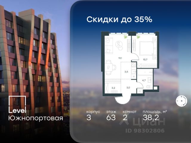 В северной части района Печатники продается 2-комнатный апартамент площадью 45.10 кв.м без отделки. Апартаменты расположены на 4 этаже 13-этажного корпуса 14 в жилом комплексе комфорт-класса Level Южнопортовая (компания Level Group/Левел групп). Отличная транспортная доступность: - 10 мин. пешком до станции метро "Кожуховская"; - 20 мин. пешком до станции МЦК "Дубровка"; - 3 мин. на авто до ТТК; - 13 мин. на авто до Садового кольца; - 15 мин. на авто до Бульварного кольца. Продуманный архитектурный проект: - авторская архитектура от бюро СПИЧ; - уникальные виды на реку, парки и достопримечательности города; - высота потолков в квартирах до 6 м; - окна высотой до 1,87 м с высоким коэффициентом сопротивления теплоотдаче. Расположение: Level Южнопортовая строится в северной части района Печатники - самой приближенной к центру. Здесь будет сформирован новый район "Южный порт", где построят крупный жилой и общественно-деловой центр, аналогичный Москва-Сити. В течение 10-12 лет в этом месте появятся не только жилые дома, но и развитая инфраструктура для жизни и работы. А еще совсем рядом находится набережная Москвы-реки, где планируется построить причалы для речных трамвайчиков и канатную дорогу. Уже сейчас вокруг жилого комплекса работают десятки магазинов и торговых центров, рядом расположено 6 парков, среди которых музей-заповедник "Коломенское". В 10 минутах пешком - 2 муниципальных и 2 частных детских сада, 7 общеобразовательных школ. Внутренняя инфраструктура: Для отдыха жителей в каждом корпусе предусмотрено лобби, оснащенное местами для отдыха, гостевыми санузлами и лапомойками, а в отдельных корпусах - камином. За счёт больших окон и высоких потолков пространства будут наполнены воздухом и светом. На первых этажах жилого комплекса откроются магазины, салоны красоты, фитнес-центр. Для детей строятся собственные детский сад и школа. Благоустройство: Внутренний двор комплекса разработан совместно с бюро GAFA. Основная идея - создать аналог Центрального парка в Нью-Йорке, гармонично сочетая высотные здания и большое изолированное парковое пространство. Вся площадь двора-парка будет огорожена и составит более 2 га, из которых 45% - озеленение. Одним из самых важных ландшафтных элементов здесь станет небольшая речка, наполняющаяся во время дождя. Вокруг неё появится сеть из островов, внутри которых расположатся тематические зоны спорта и отдыха. Технологии и инженерия: - автоматическая передача в управляющую компанию показаний квартирных счётчиков; - телефонная связь, телевидение и интернет на базе оптической мультисервисной сети; - гостевой Wi-Fi в лобби и на территории двора; - единый ключ доступа для входа на территорию комплекса.