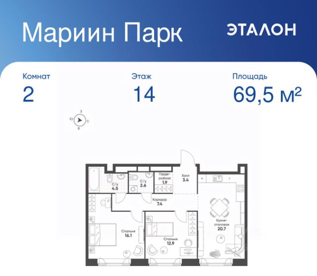 Продается 2-к квартира без отделки в ЖК "Мариин Парк". Общая площадь квартиры — 77.1 кв. м, этаж 14 из 16. Тип дома — монолитный. Цена указана при 100% оплате. Мариин Парк — камерный проект премиум-класса от Группы "Эталон" созданный для тех, кто ценит свое время и комфорт, а его расположение станет дополнительным приятным преимуществом. От бессонных транспортных артерий города он надежно защищен соседними кварталами, при этом имеет прямой выезд на ТТК и находится в 5 пеших минутах от станции метро "Марьина Роща". Здесь вы найдете долгожданное уединение и вместе с тем легко сможете войти в динамичный ритм городской жизни. Центр и все знаковые маршруты находятся рядом, а исторический район города предлагает богатую инфраструктуру. Визуальный облик дома выполнен в стиле модернизм. В качестве основного облицовочного материала используются крупноформатные керамогранитные панели с имитацией натурального белоснежного камня. Арочный стиль, используемый в фасадном решении дома, придает ему особую элегантность, характерную для классических и исторических зданий. Изящные арки обеспечивают фасадам легкость и динамику, а за счёт того, что этот приём используется на последних этажах и в стрит-ритейле первого этажа, создаётся ощущение парящего фасада. На внутридомовой территории реализовано благоустройство, тщательно продуманное для различных сценариев дня. Планировочные решения всех квартир разработаны таким образом, чтобы функциональность помещений дополняла комфорт проживания. В проекте представлен широкий выбор квартир различной комнатности и площадей. В Мариин Парк все направлено на удовлетворение высоких ожиданий его резидентов.