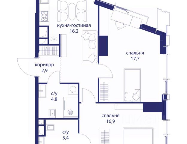 В продаже 2-к квартира от застройщика. Общая площадь 62.80, жилая 28.20, кухня 16.3. Квартира расположена на 2 этаже жилого квартала "Событие-6", корпус 1, Секция 1. Квартира без отделки. Срок сдачи: 4 кв. 2029 года. СОБЫТИЕ.6 — финальный дом парк-квартала СОБЫТИЕ на Мосфильмовской. Переезжайте в уже сформированный квартал с готовой инфраструктурой и парком! Премиальный жилой комплекс в престижном районе Москвы предлагает стильную архитектуру, продуманное благоустройство и великолепно разнообразие общественных пространств. Свой парк прямо возле дома! Архитектура Архитектура СОБЫТИЯ.6 выполнена в ультрасовременном стиле московским бюро Atrium на основе дизайн-кода британских архитекторов LDA Design и UHA London. Дом отличает оригинальная геометрия фасадов, большое остекление и высокие лобби (до 6,2 м) с авторской мебелью и светильниками. Расположение Мосфильмовская улица (Раменки) — один из престижных районов Москвы. Близость к историческому и деловому центру, природным зонам Запада столицы. Транспортная доступность: • 10 мин до Москва-Сити и ТТК; • 15 мин до Садового кольца; • 25 мин до аэропорта Внуково; • 7-10 мин до станций метро "Аминьевская" и "Мичуринский проспект". Инфраструктура: • парк "Событие" (12 га, финалист конкурса Правительства Москвы) с беговыми (1,5 км) и велодорожками (2,7 км), экотропой (1,6 км), площадками, лекторием; • школа, детский сад, магазины, салоны красоты, рестораны (к моменту заселения); • мультидвор с игровыми и спортивными площадками, мини-бульваром; • общественная терраса на 10-м этаже (коворкинг, лаунж); • Закрытые общественные пространства: детская комната, спортивный зал, коворкинг, лаунж-зоны. Паркинг 256 мест для жителей (48 — для электромобилей), 24 гостевых (5 — для электромобилей), мойки колес, кладовые, зоны для велосипедов. Окружение Парки и заповедники (Воробьёвы горы, Матвеевский лес и др.), МГУ, театр им. Н. И. Сац, стадион "Лужники". Безопасность Видеонаблюдение, контроль доступа, видеодомофоны, консьерж-сервис 24/7, системы пожарной безопасности и мультисервисная оптическая сеть.